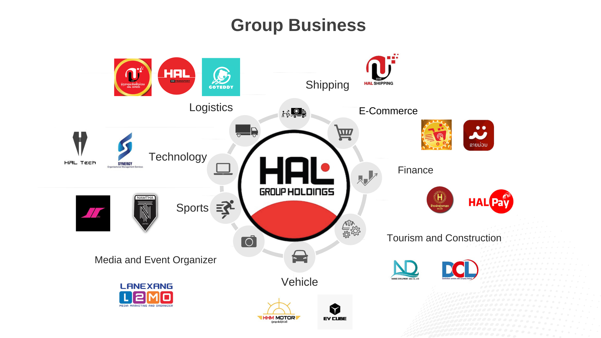 HOUNG AH LOUN GROUP HOLDINGS (HAL Group) is a dynamic and diversified conglomerate managing a wide network of companies across various industries. Established with a vision to foster innovation and modernity, HAL Group is dedicated to delivering value through its operations in sectors such as cross-border logistics, express transportation, technology, finance, sports, corporate management, media and event services, electric vehicle import and distribution, e-commerce, tourism, construction design and development, and biotechnology. Guided by a commitment to innovation, customer satisfaction, and sustainable practices, HAL Group strives to enhance lifestyles, transform industries, and contribute to a better future. Its operations are underpinned by a strong sense of social responsibility and environmental stewardship, ensuring a positive impact on communities and the planet.